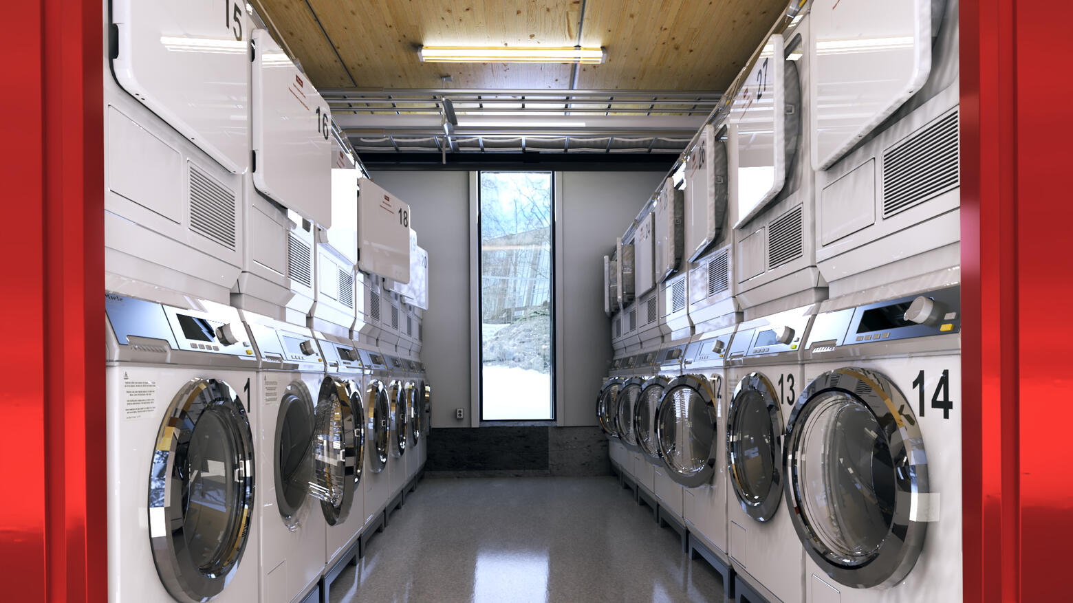 Info: Exercise in hyper realism recreating a picture of a laundromat.